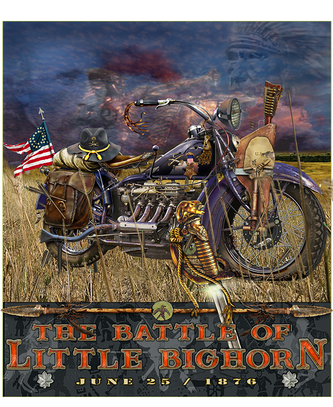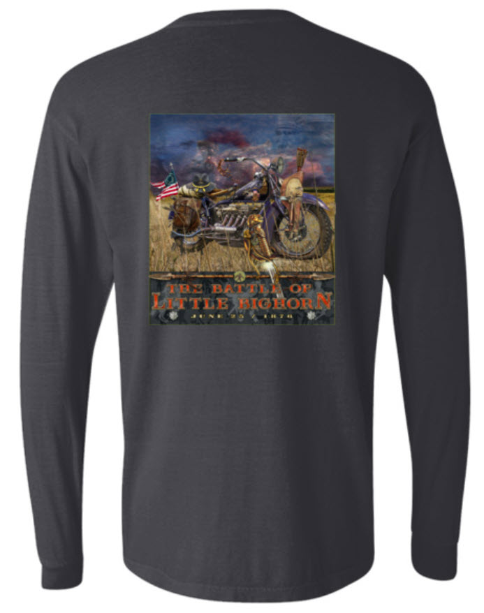 This long sleeve tee is the perfect canvas to display Jene’s original art. The Battle of Little Bighorn is a concept piece with a historical story to tell.